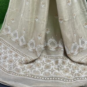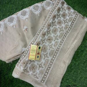 Add timeless sophistication to your ethnic wardrobe with this beautifully handcrafted Lucknowi Chikankari Saree. Designed in an elegant beige tone, this saree reflects subtle luxury and traditional artistry. The delicate hand embroidery combined with fine detailing creates a graceful drape perfect for weddings, festive celebrations, and special occasions.