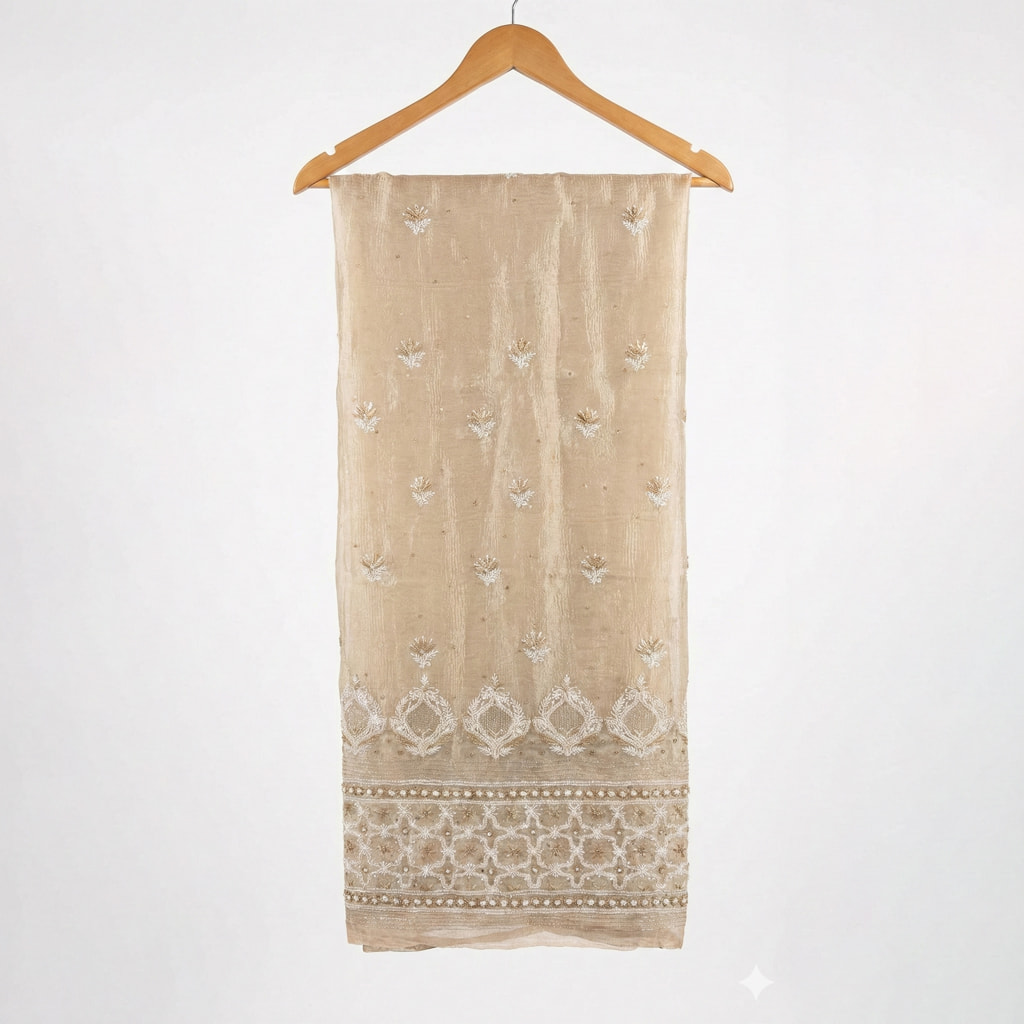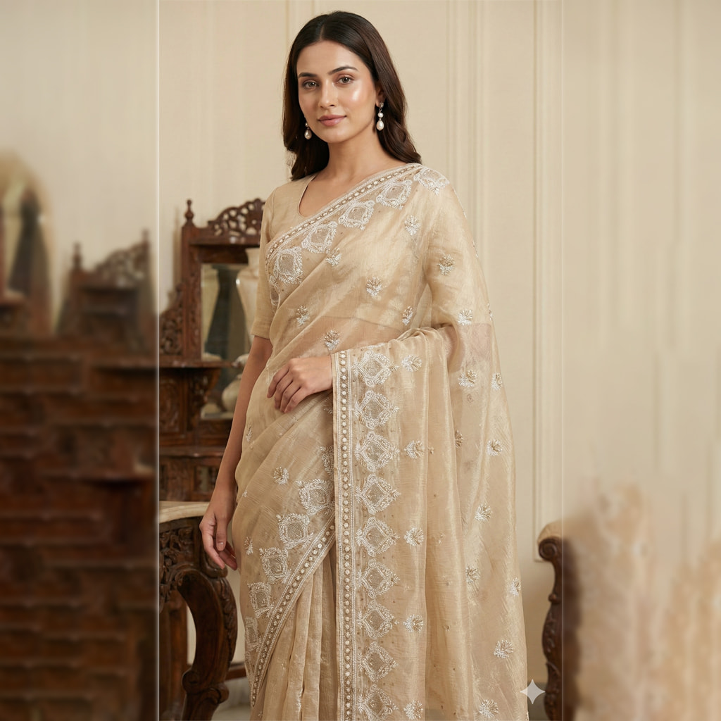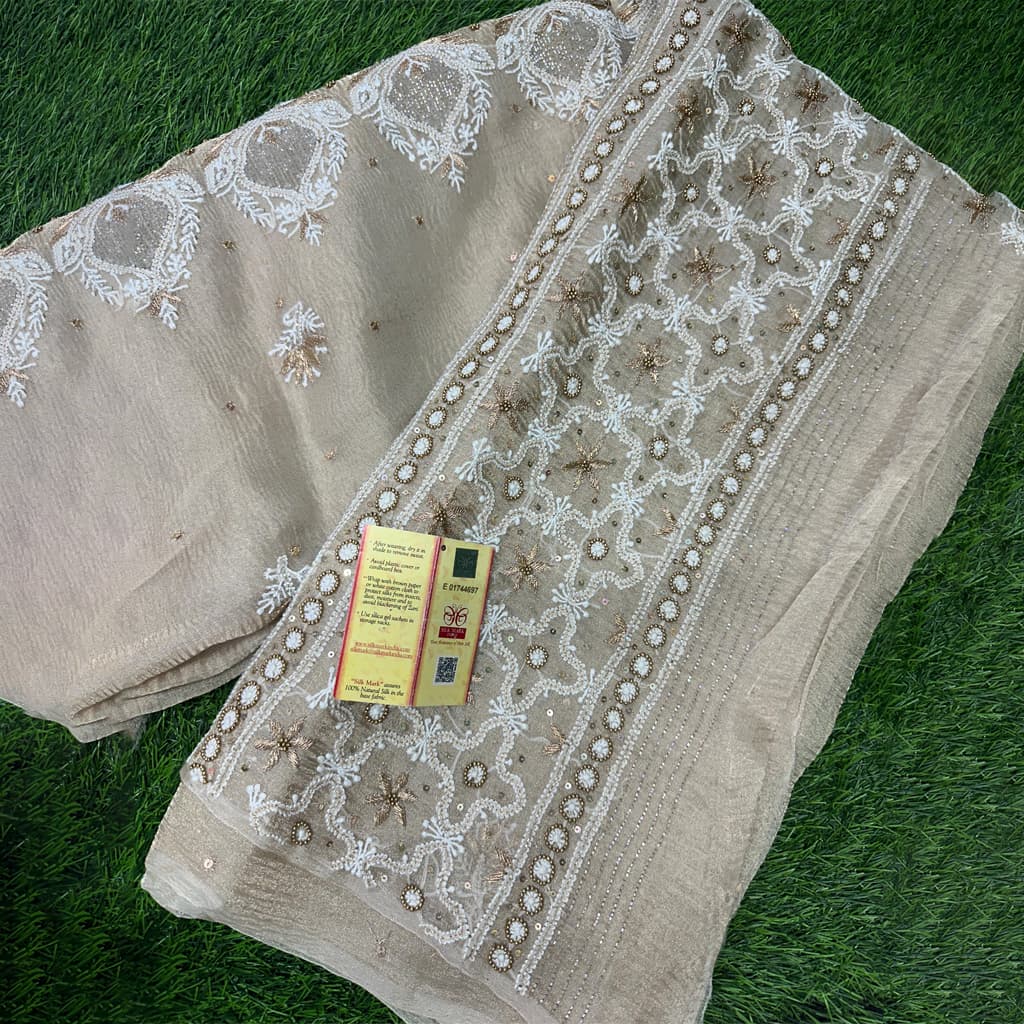 Graceful Beige Lucknowi Chikankari Saree