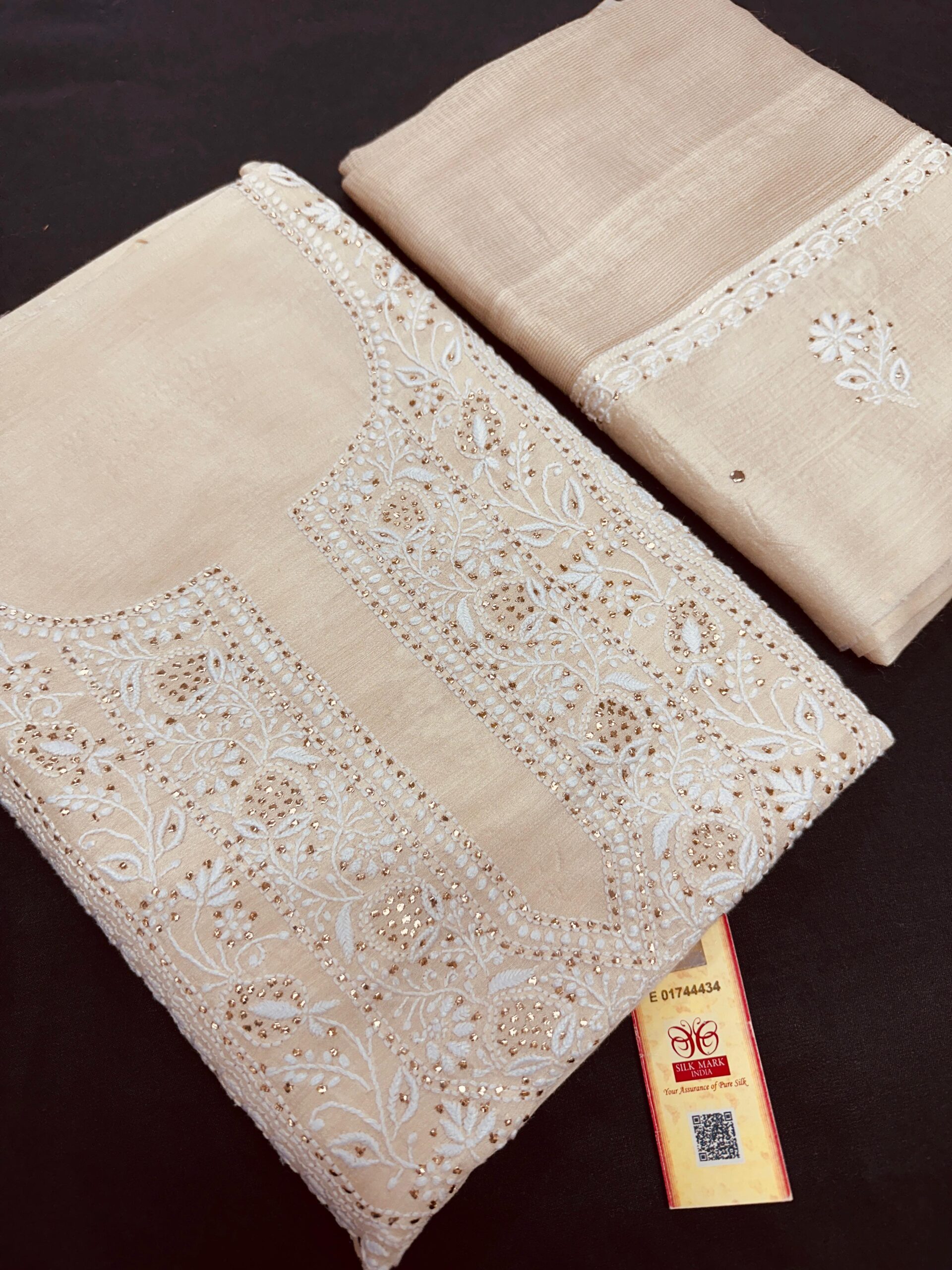 Intricate Lucknowi Chikan embroidery, - Mukesh (Mukaish) Work: