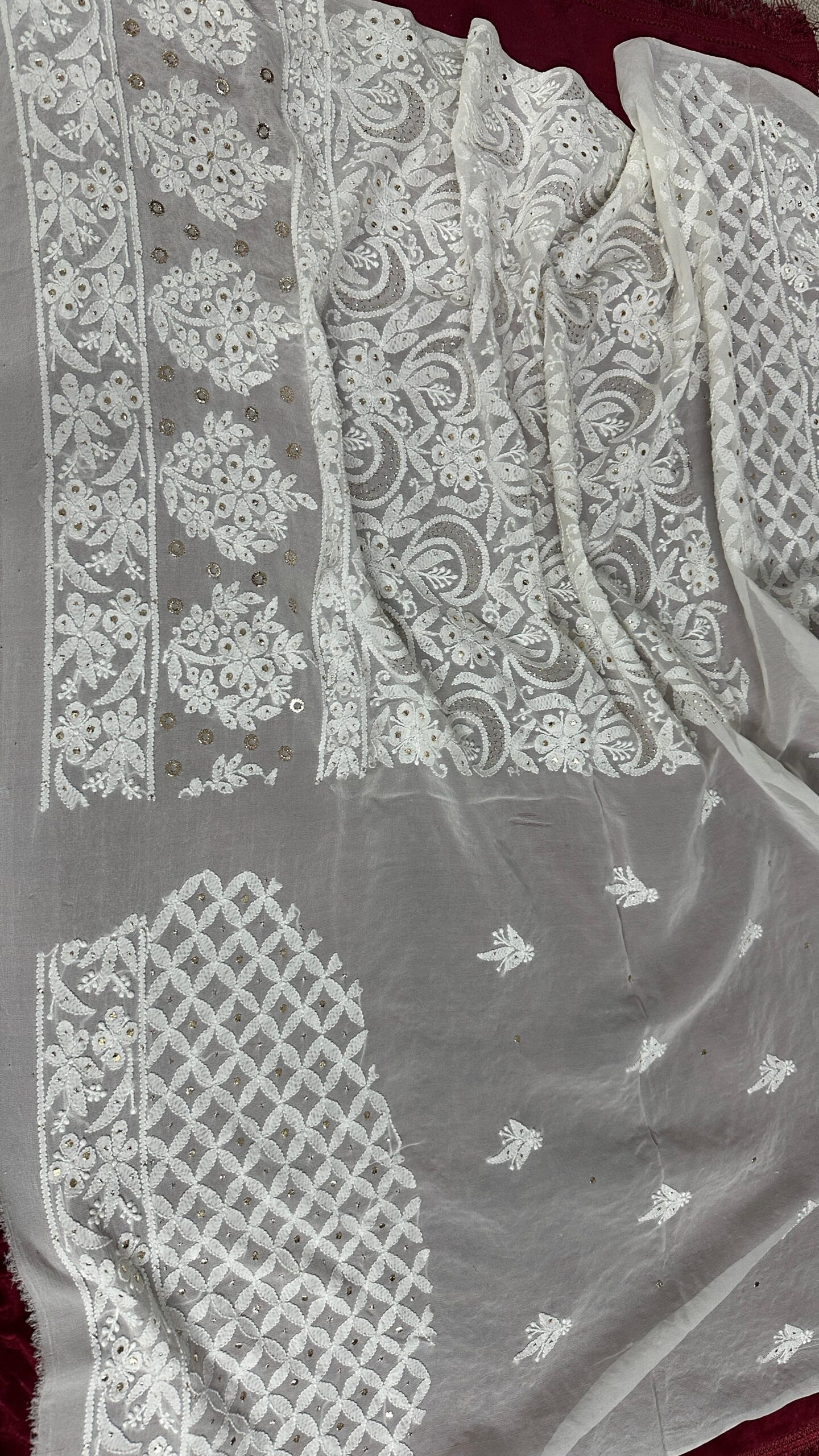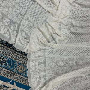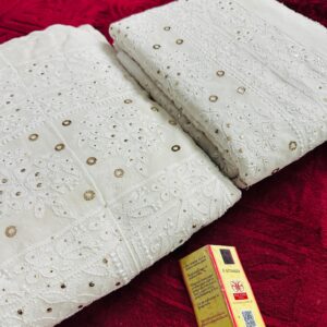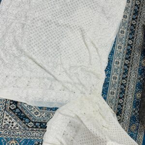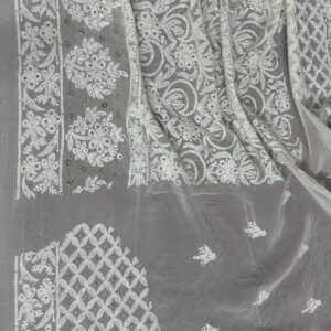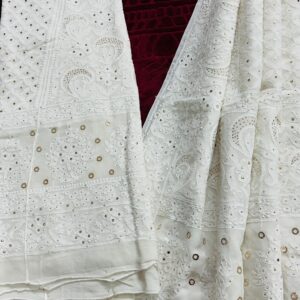 Features authentic Lucknowi Chikan embroidery, intricately hand-worked across the fabric.