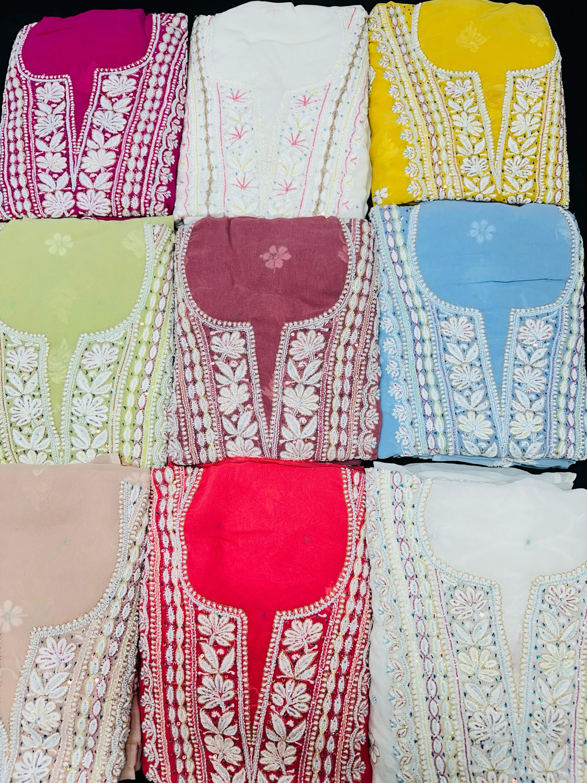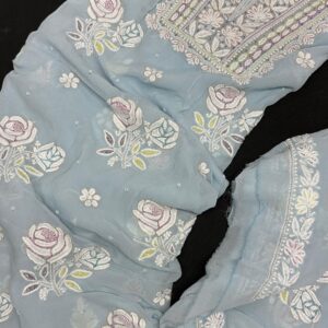 Lucknowi Chikan 3D Work: Heavy and intricate Lucknowi Chikan embroidery featuring raised 3D motifs that add depth and dimension to the design.