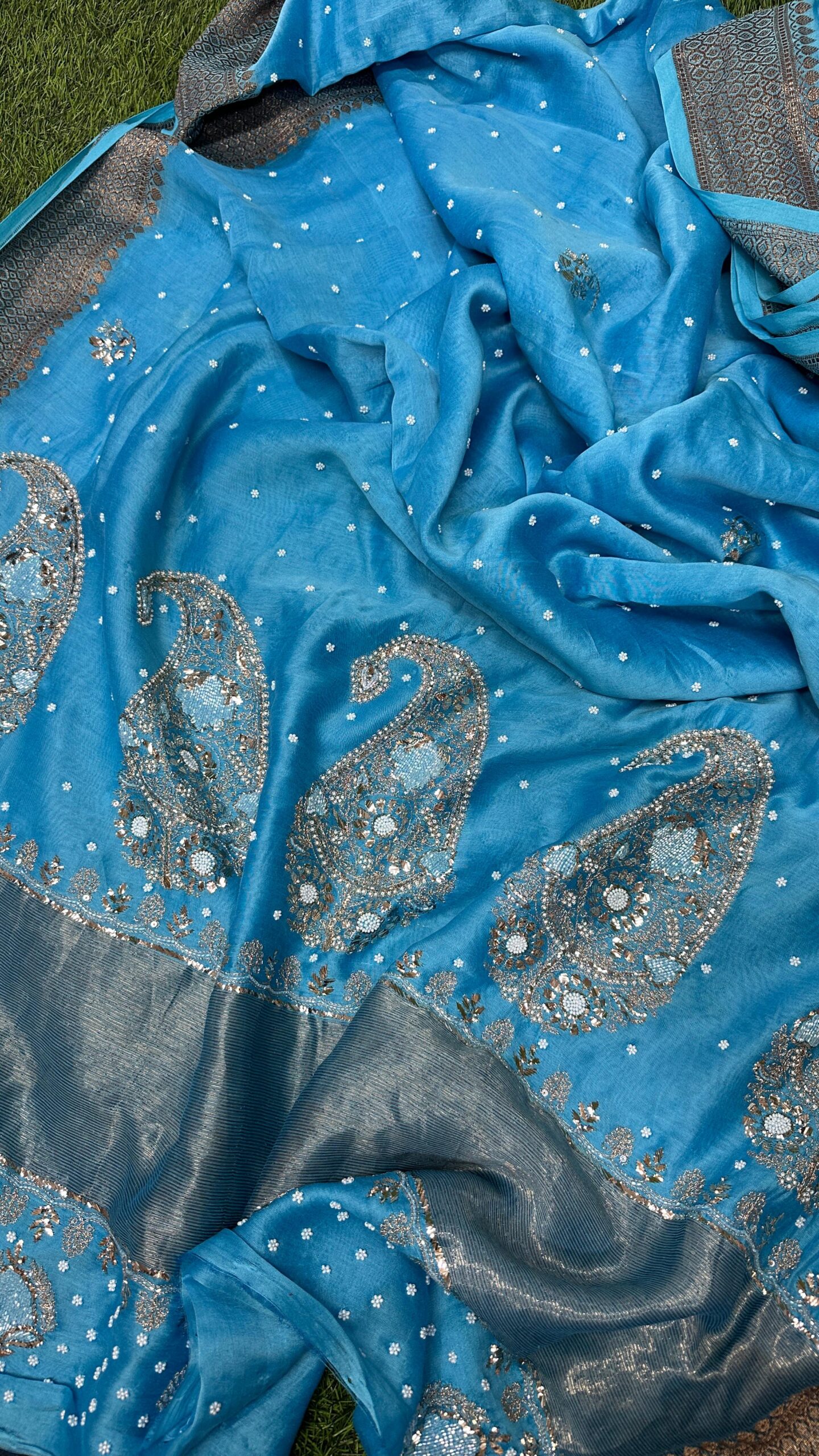 Saree Name: Banarasi Chanderi Silk Saree with Mukesh, Katdana, and Pearl Work