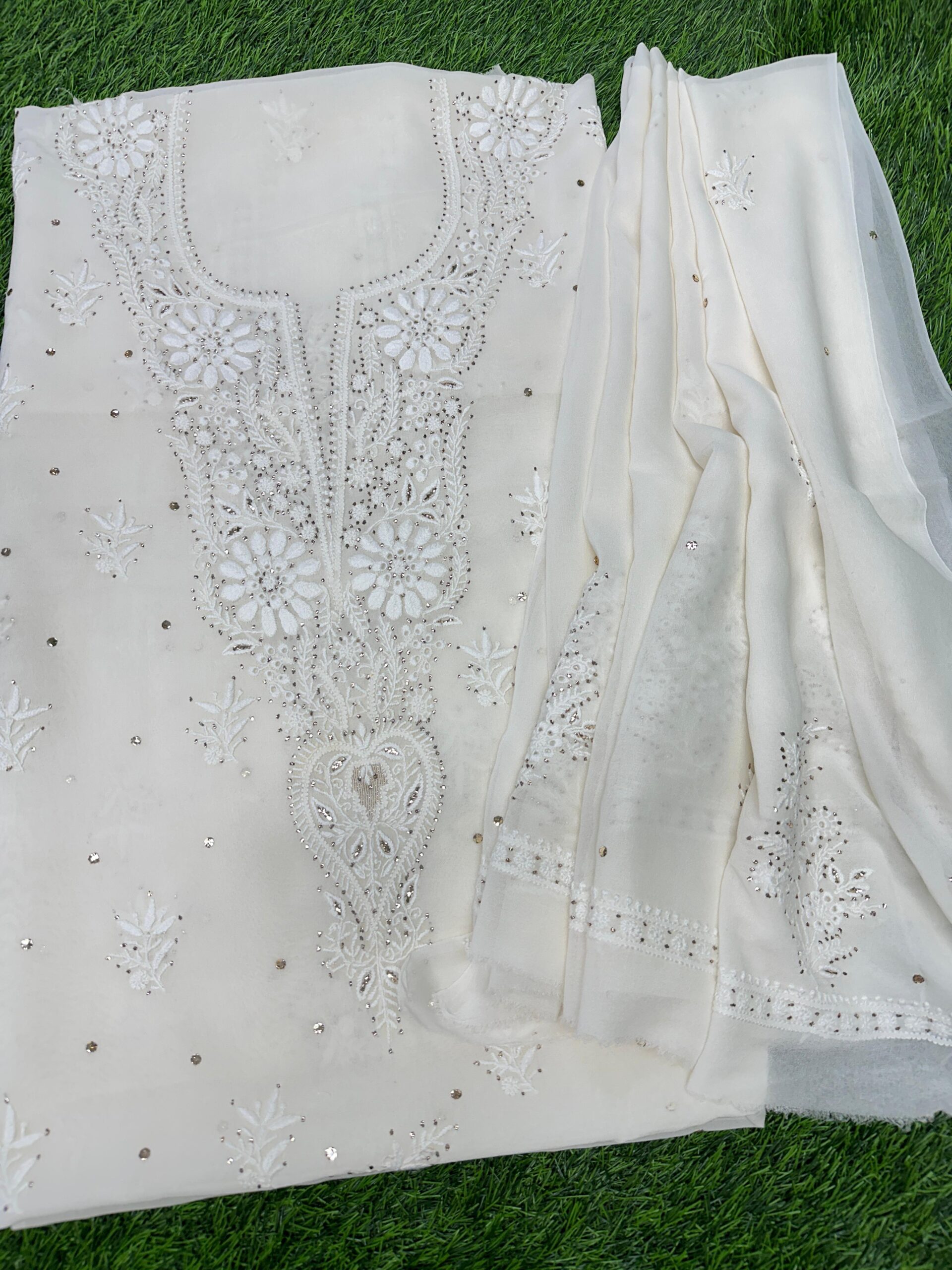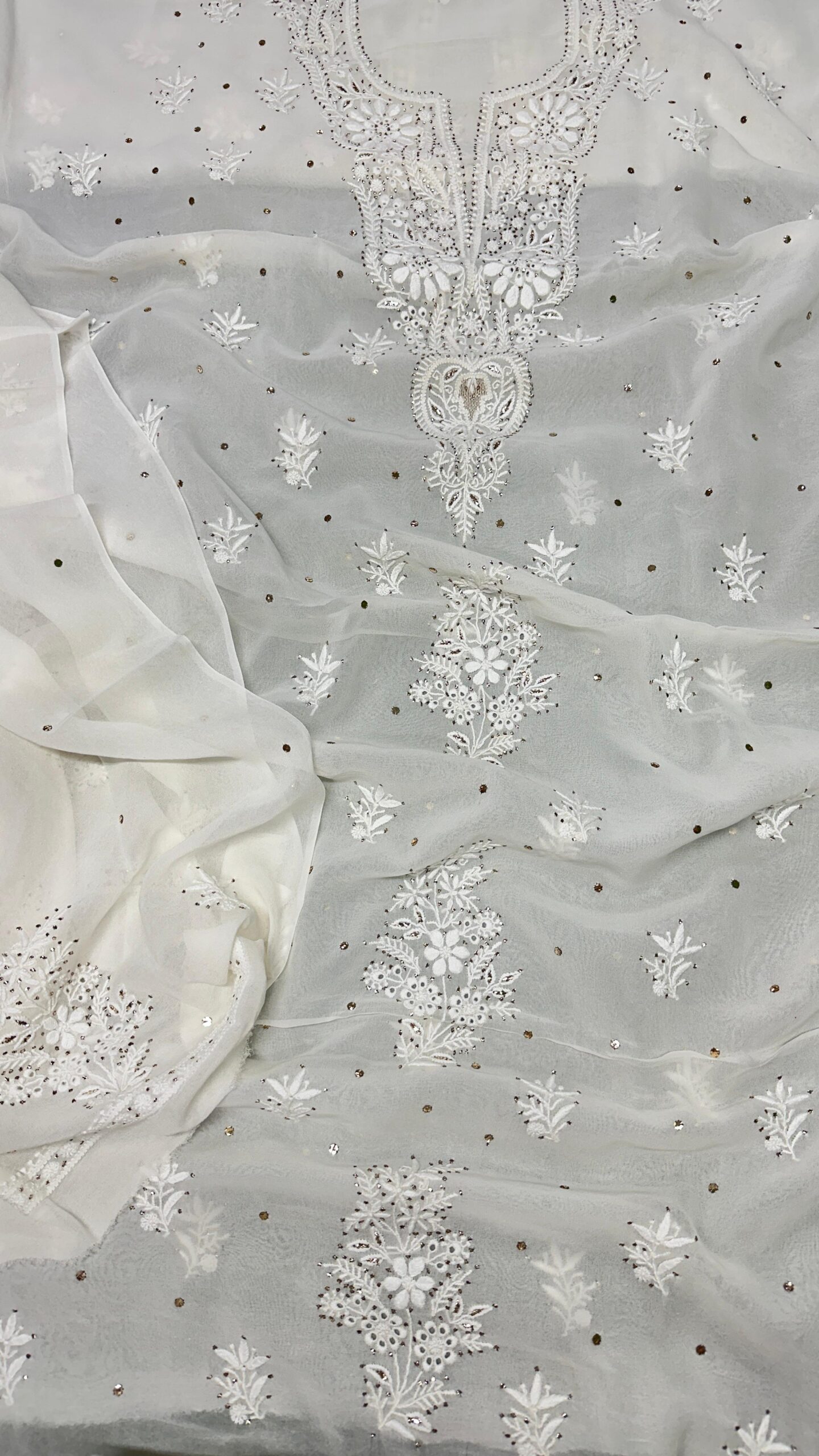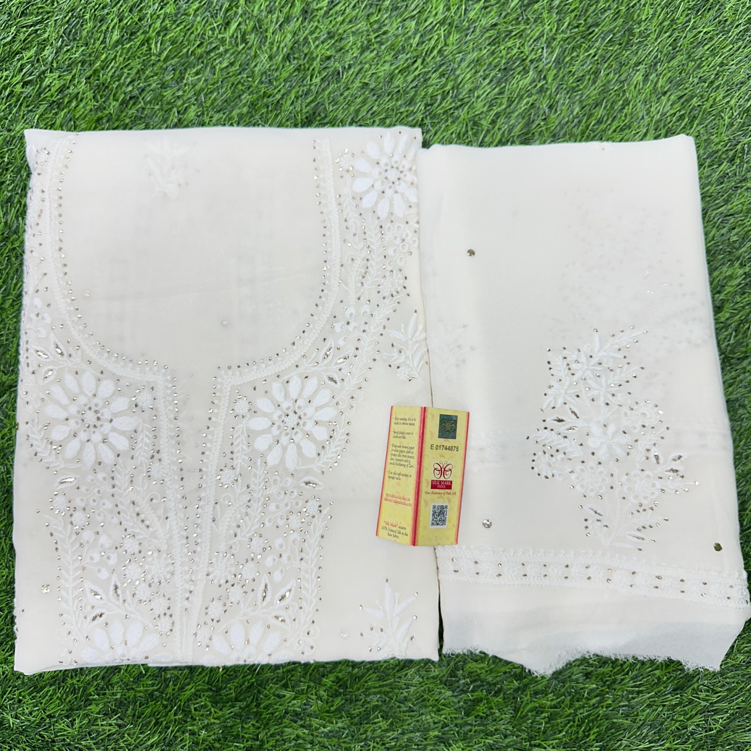 Crafted from pure georgette, known for its lightweight, breathable texture and fluid drape. The 3-meter length ensures flexibility in tailoring and styling, - Dupatta: