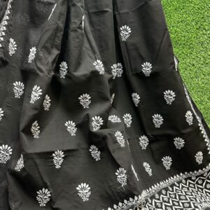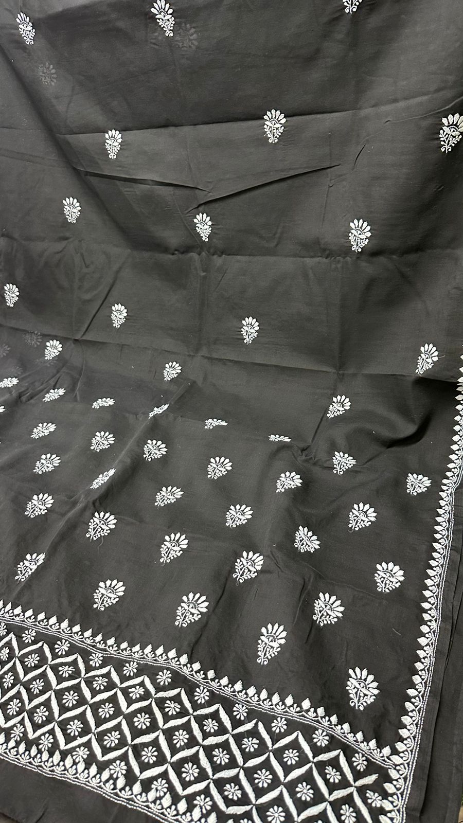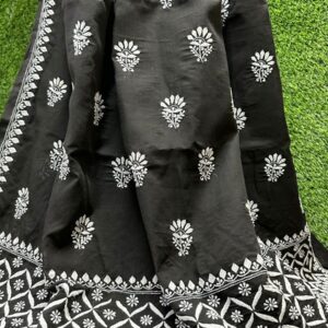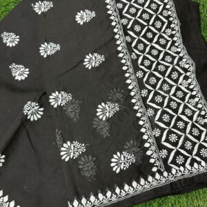 - Embroidery: Intricate Lucknowi Chikan Hand Embroiderey work with delicate floral designs.