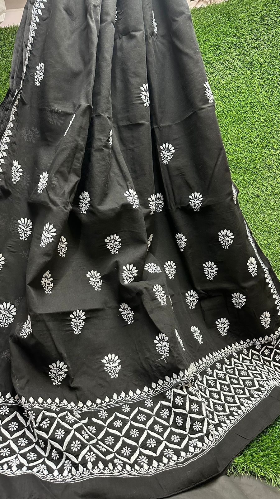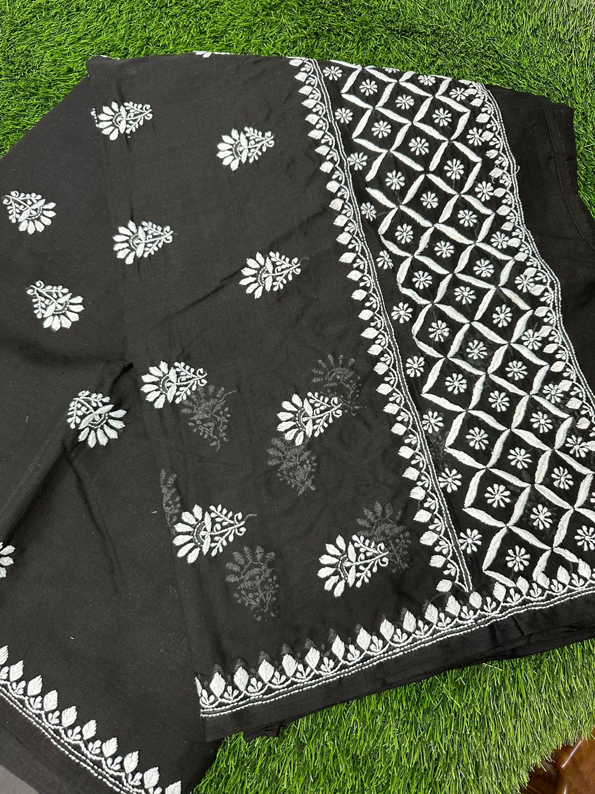 Product Title: Elegant Soft Cotton Saree with Lucknowi Chikan Work and Matching Blouse (6.5 Meters)