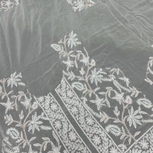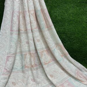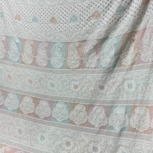 Elevate your ethnic style with this soft viscose georgette saree, featuring intricate jaal work, Lucknowi Chikan embroidery, and luxurious embellishments like pearls, katdana, and pitta work. Lightweight, dyeable, and effortlessly elegant—perfect for weddings, festivities, and timeless occasions.