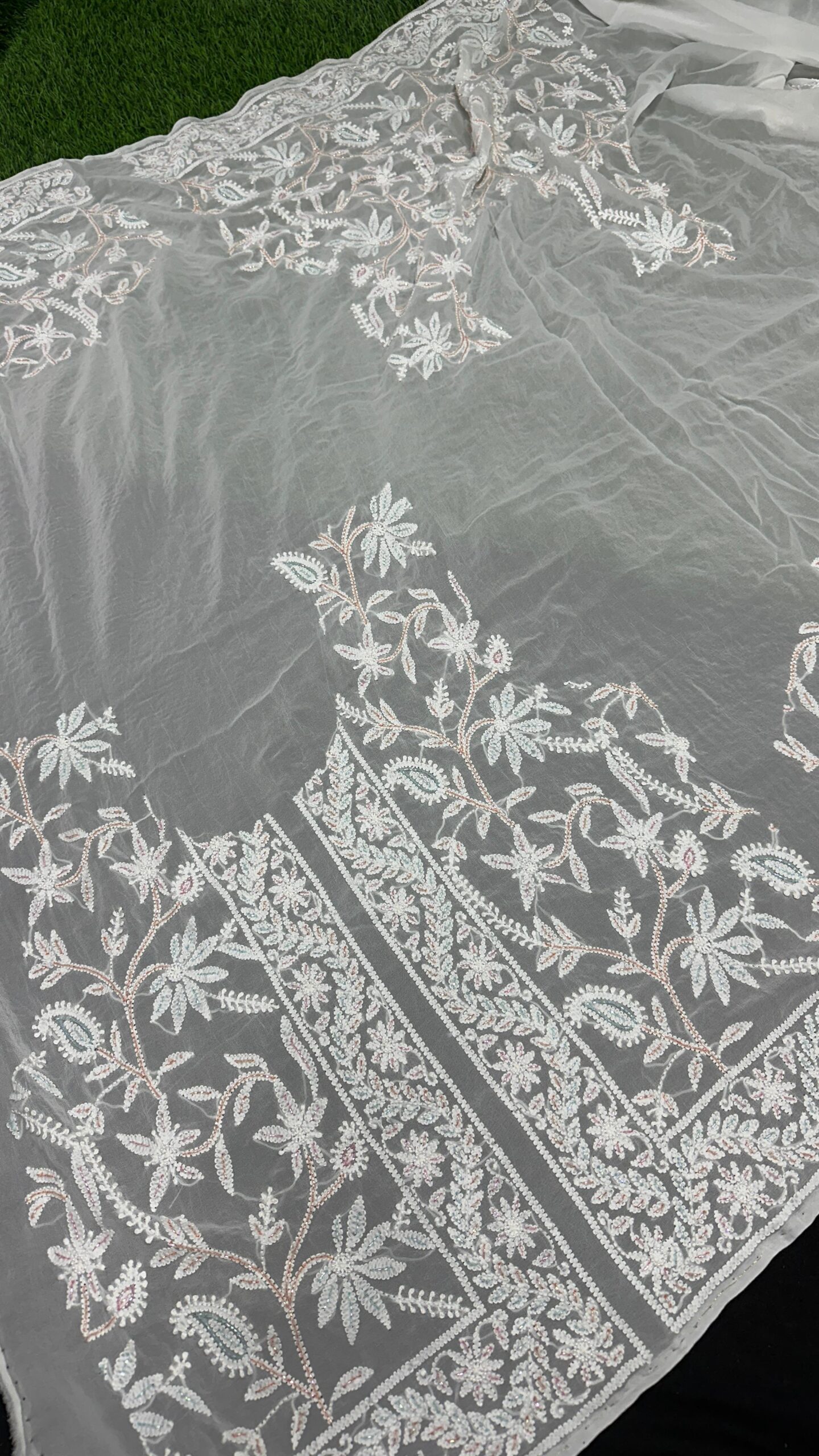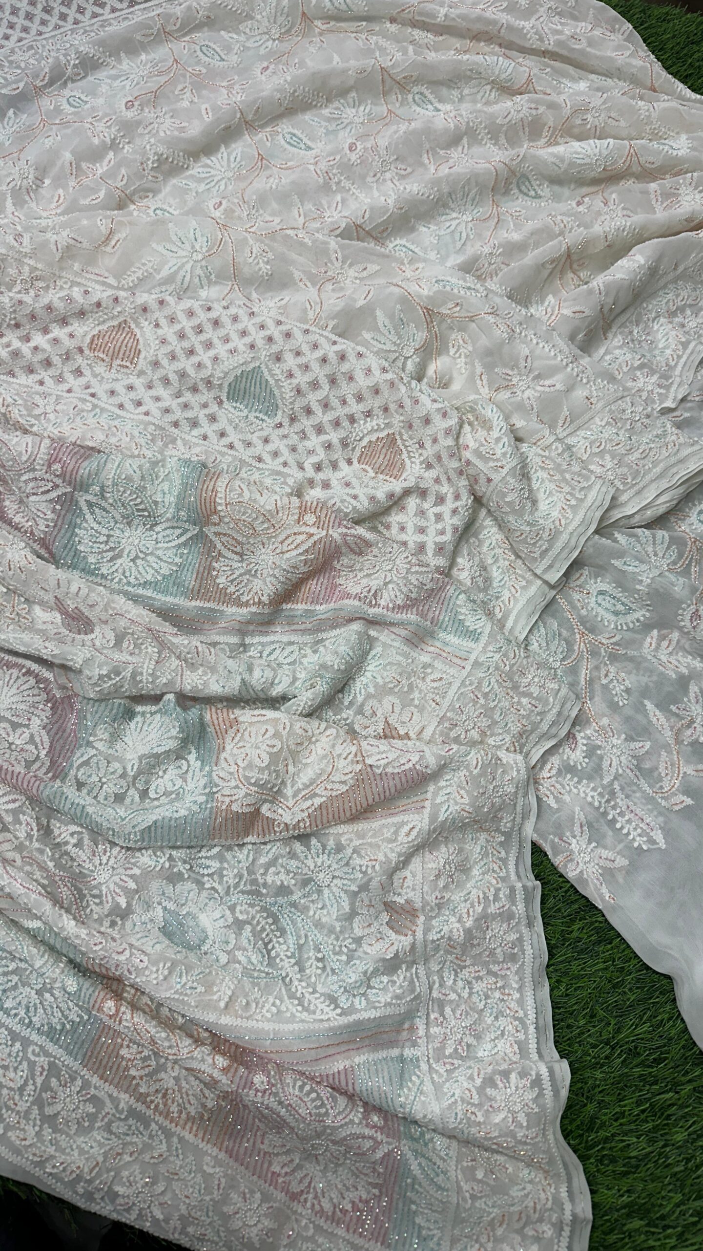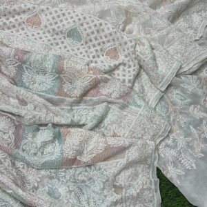 2. Lucknowi Chikan Embroidery: Fine, delicate stitches with floral motifs, adding grace and tradition.