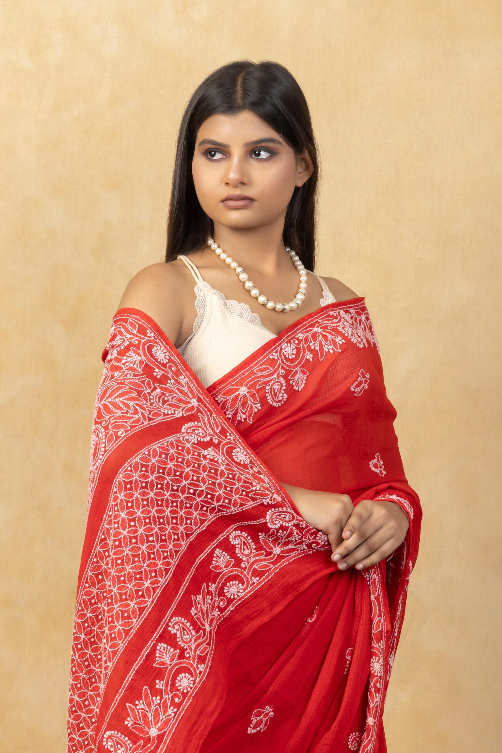 Bharat Kota Doriya Saree with Lucknowi Chikan Work