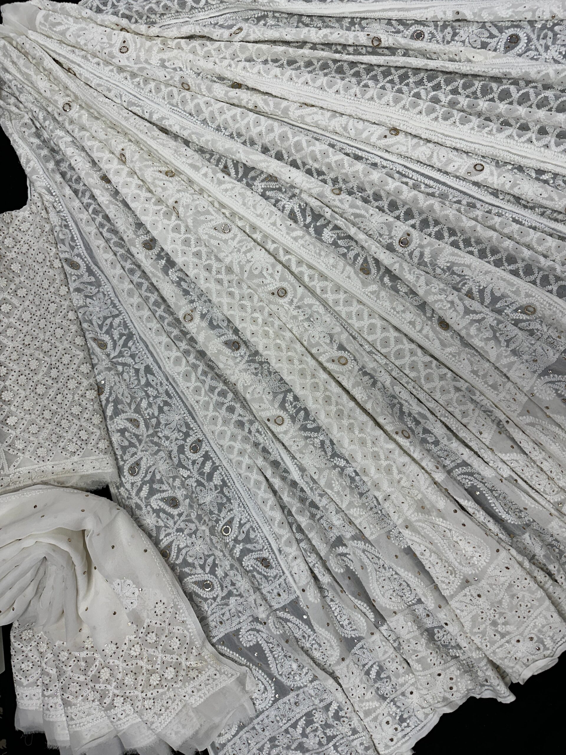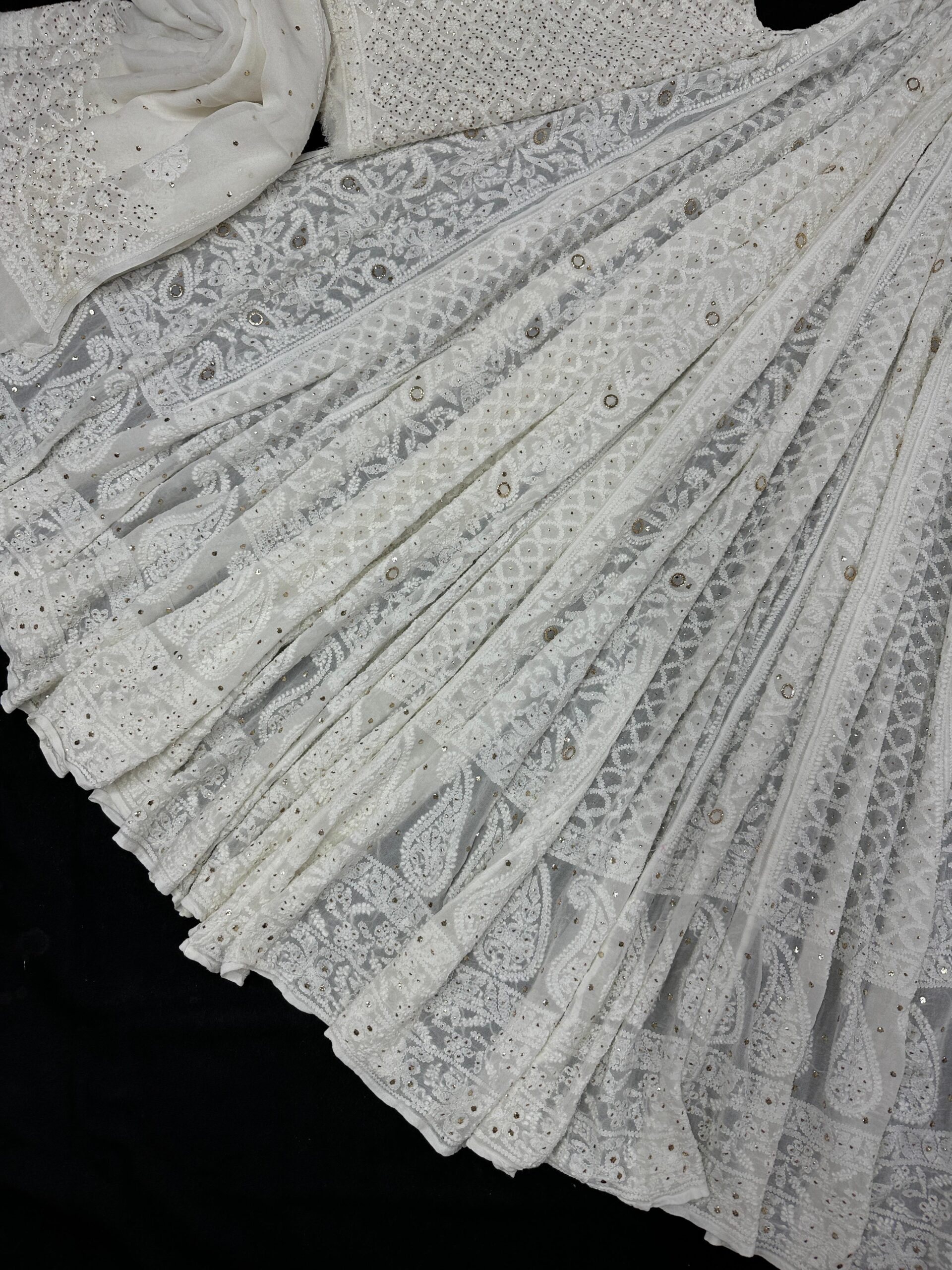 Design: Fully embroidered with dense Jaal (net-style) Chikan work