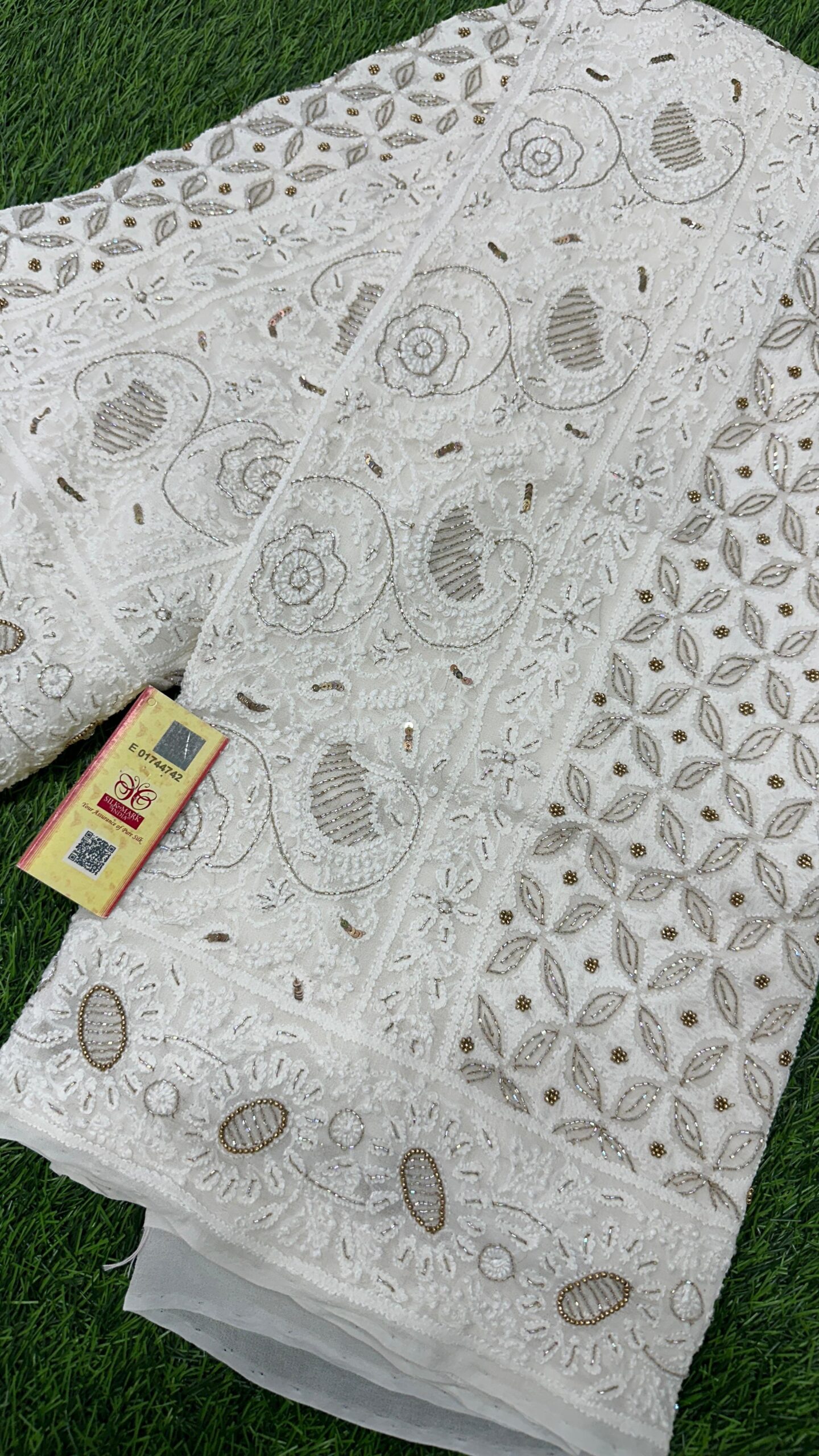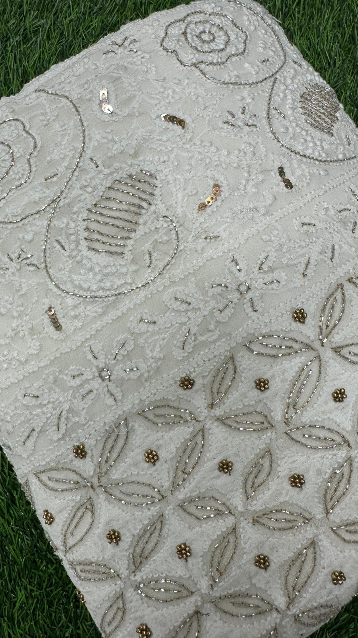 Katdana work ,Teeki detailing ,Pearl embellishments ,Pitta work