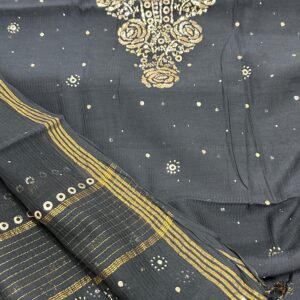 • Features delicate Mukesh work that adds a reflective sheen, enhancing the elegance of the fabric with intricate embroidery.