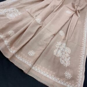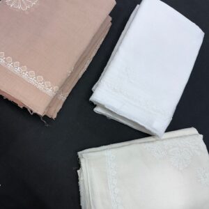 Intricately hand-crafted or machine-finished Chikan embroidery, a traditional art form from Lucknow