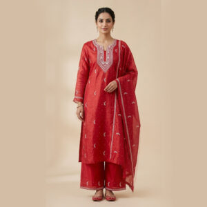 Be the first to review “Red Lucknowi Chikan Embroidered Unstitched Kurta Fabric Set with Dupatta for Women”