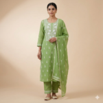 Banarasi Mul Chanderi Silk Suit (Pista Green) | Lucknowi Chikan Handwork | Shirt Dupatta Set | Unstitched